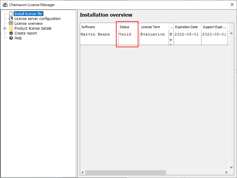 - "Chemaxon License Manager" verður tá starta & er neyðugt at vísa á heintaðu fílu (license.cxl)..